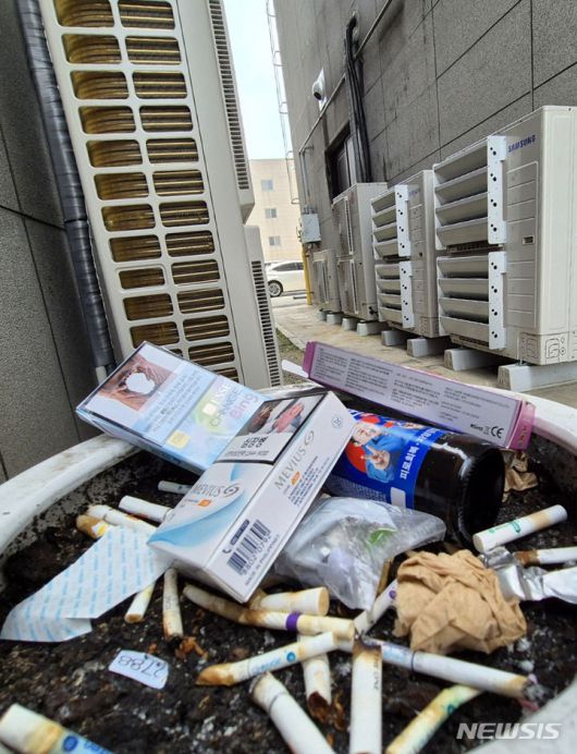 [전주=뉴시스] 전북 전주시 완산구 효자동의 한 상가 지역에 임시로 놓인 재떨이용 화분에 놓여있는 담배꽁초들. 해당 사진은 기사 내용과 관련이 없습니다. (사진=뉴시스 DB). photo@newsis.com