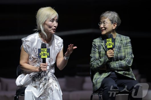 (서울=뉴스1) 박정호 기자 = 주인공 '헤다' 역을 맡은 배우 이혜영(왼쪽)과 초연 당시 연출을 맡았던 박정희 국립극단 단장 겸 예술감독이 19일 오후 서울 중구 명동예술극장에서 열린 국립극단 연극 '헤다 가블러' 기자간담회에서 대화를 나누고 있다. 연극 '헤다 가블러'는 근대 연극의 아버지 헨리크 입센이 1890년 발간한 희곡으로 남편의 성인 '테스만'을 거부하고 아버지의 성이자 자신의 성인 '가블러'를 붙인 채 살아가는 여주인공 '헤다'의 이야기로 17세기 남성 중심적 사회에 센세이션을 일으켰다. 한편 13년 만에 다시 무대에 오르는 연극 '헤다 가블러'는 티켓오픈 7일 만에 22회 전 회차 7,144석 매진되며 연극 팬들의 뜨거운 관심을 받고 있다. 2025.5.19/뉴스1