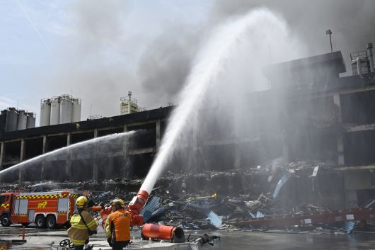 지난 18일 오전 광주광역시 광산구 소촌동 금호타이어 광주공장 화재 현장에서 소방 당국이 이틀째 진화 작업을 벌이고 있다. 뉴시스 |