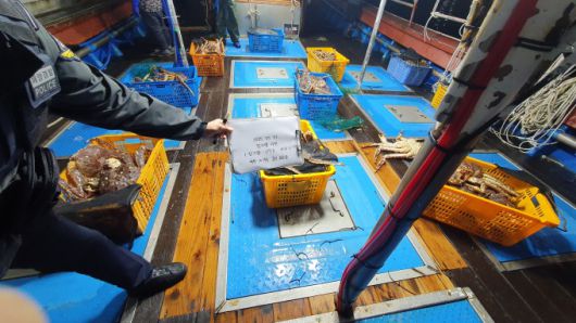 앞서 3월 1일에는 구룡포항 동방 공해상에서 러시아 화물선과 국내어선이 사전공모를 통해 킹크랩 4300kg을 밀수하다 해경에 적발되기도 했다.