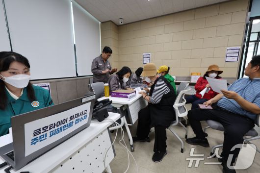 접수처에 들어선 이들은 번호표를 뽑아야 하는지, 피해접수는 언제까지 운영되는지 등을 물었다.
