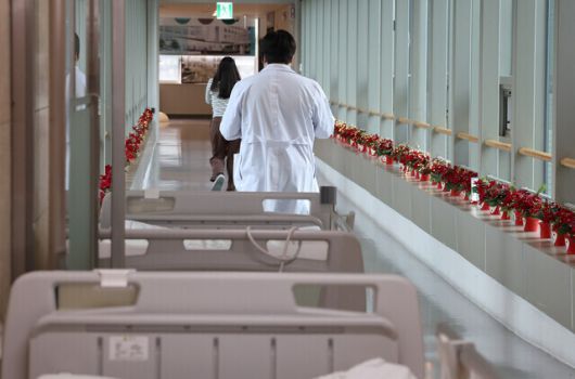 지난 1월 서울의 한 대형 병원에서 의료진이 빈 침상을 지나 이동하는 모습. 연합뉴스 |