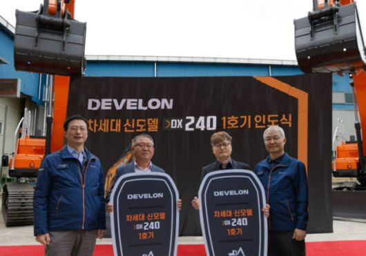 HD현대인프라코어는 19일 인천광역시 동구에 위치한 본사에서 자체 브랜드인 ‘DEVELON’ 차세대 신모델 가운데 하나인 24t급 중형 굴착기(DX240) 1호기 고객 전달식을 진행했다고 밝혔다.
