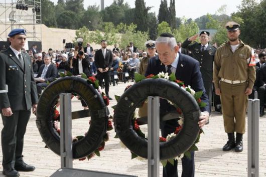 베냐민 네타냐후 이스라엘 총리가 지난 4월 예루살렘의 홀로코스트 추모관에서 열린 추모 행사에 참석했다. 예루살렘=로이터 연합뉴스