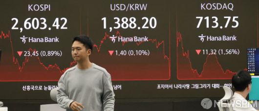 [서울=뉴스핌] 양윤모 기자 = 국제 신용평가사 무디스가 미국 국가 신용등급을 강등한 가운데, 19일 오후 코스피가 전장 종가보다 23.45포인트(0.89%) 하락하며 2,603.42로, 코스닥은 11.32포인트(1.56%) 하락한 713.75로 장을 마감한 가운데, 서울 중구 하나은행 딜링룸에서 직원들이 업무를 보고 있다. 서울외환시장에서 원·달러 환율은 전장 대비 1.40원 하락한 1,388.20원에 거래를 마감했다. 2024.05.19 yym58@newspim.com |