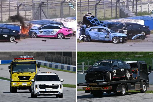 그러나 큰 사고가 펼쳐졌다. 7번 코너에 진입하던 강신홍(비앙코웍스)을 시작해 곽호준(범스), 신일경(드림레이서), 정재호(다함 모터스) 등 여러 선수들이 방호벽에 충돌이 이어졌다.