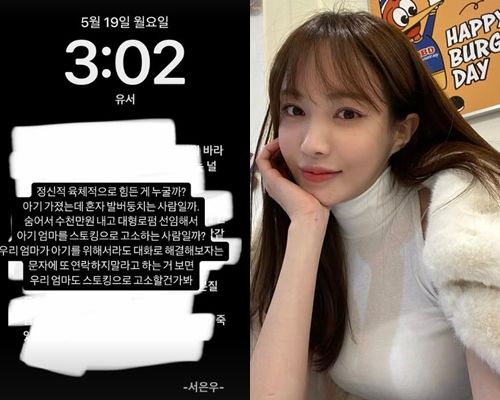 사진에는 “숨어서 수천만 원 내고 대형 로펌 선임해서 아기 엄마를 스토킹으로 고소하는 사람일까?”라며 “우리 엄마가 아기를 위해서라도 대화로 해결해 보자는 문자에 또 연락하지 말라고 하는 거 보면 우리 엄마도 스토킹으로 고소할 건가 봐”라며 억울함과 분노를 토로했다.