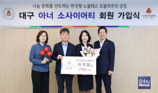 이지양 대표는 "나눔을 실천하는 주변의 많은 아너 소사이어티 회원들을 보며 늘 동경해왔다. 아너 소사이어티 가입을 시작으로 앞으로도 도움이 필요한 이웃을 위한 나눔 활동을 지속적으로 이어 나가겠다"고 소감을 밝혔다.
