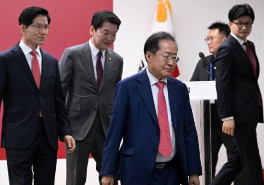 지난달 29일 서울 여의도 국민의힘 당사에서 열린 제21대 대통령 후보자 국민의힘 3차 경선 진출자 발표 행사에서 경선에 탈락 후 정계은퇴 의사를 밝힌 홍준표 후보가 발표장에서 나가고 있다. [사진=연합뉴스] |