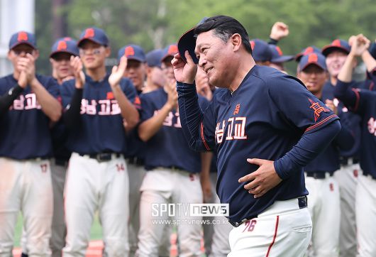 [스포티비뉴스=목동, 곽혜미 기자] 제79회 황금사자기 고교야구전국대회 유신고와 성남고의 결승전이 19일 오후 서울 양천구 목동야구장에서 열렸다. 우승을 한 성남고 박혁 감독이 감독상을 수상하고 있다. <저작권자 ⓒ SPOTV NEWS. 무단전재 및 재배포 금지>