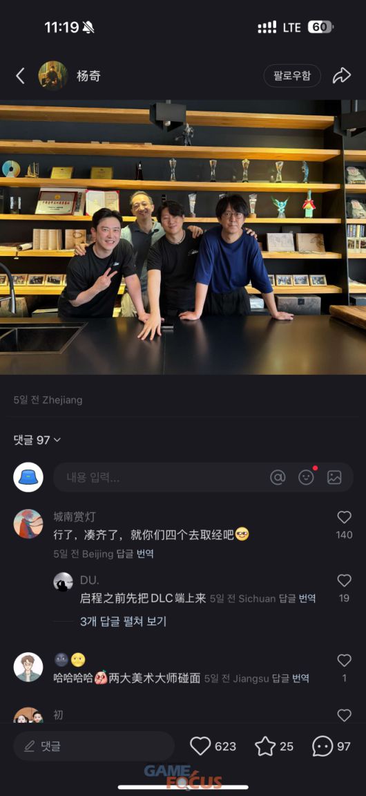 '팬텀 블레이드 제로' 개발사 대표인 량치웨이는 자신의 SNS에 '스텔라 블레이드' 김형태 대표와의 만남을 공개하며 'Different 'Blade', Same Love'라는 문구와 함께 액션 게임이라는 공통 주제에 대해 열정을 공유했다고 밝혔다. 김형태 대표의 사인을 받은 '스텔라 블레이드' 패키지도 인증해 눈길을 끈다.김형태 대표는 항저우에서는 '검은신화: 오공' 미술 전시회를 관람한 뒤 펑 PD와 양 아트 디렉터를 만나 대화하고 기념 사진도 촬영했다. 게임사이언스 측은 김형태 대표에게 플레이스테이션5 버전 '검은신화: 오공' 사인 패키지도 전달한 것으로 알려졌다.