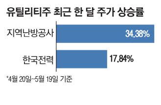 지역난방공사 역시 이날 한 달간 34.38% 오른 주가에 거래를 마감했다. 그동안 낮은 수익성으로 주가가 지지부진했던 유틸리티주들 주가가 최근 들어 반등한 것은 1분기 실적 회복에 따른 배당 증가 가능성 때문이다.