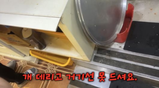 안내견을 동반한 시각장애인을 창고 같은 공간으로 안내한 부산 횟집 모습이 공개돼 공분을 샀다. /사진=유튜브 채널 우령의 유디오 갈무리 |