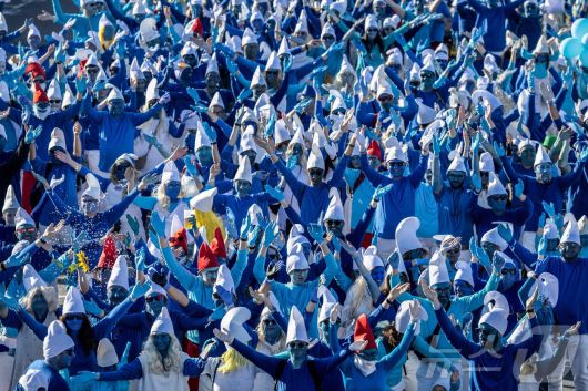 (서울=뉴스1) 박우영 기자 = 프랑스 서부의 한 소도시에 만화 캐릭터 스머프(smurf) 복장을 한 인원이 3000명 넘게 모여 세계 신기록이 경신됐다고 AFP통신 등이 18일(현지시간) 보도했다.