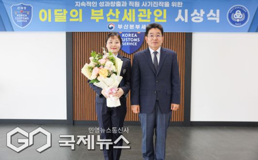 (부산=국제뉴스) 김옥빈 기자 = 부산세관은 19일, 올해 '5월의 부산세관인'으로 김해공항세관 강수경·유미숙 주무관을 선정해 시상했다고 밝혔다.