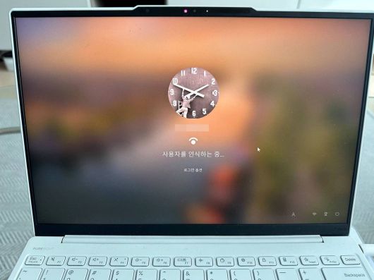 얼굴이 카메라 프레임 중앙에 위치하도록 조정하면, 내장 카메라가 사용자 얼굴을 인식합니다. 화면의 파란색 테두리 안에 얼굴이 정확히 인식되면, PIN 설정 단계를 거쳐 얼굴 인식 로그인 설정이 완료됩니다. 이때 설정하는 PIN은 얼굴 인식 기능을 사용할 수 없는 경우를 대비한 백업 수단으로 사용됩니다.