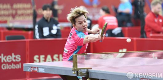 [도하=뉴스핌] 사진공동취재단 = 안재현이 19일 카타르 도하 카타르대학교 스포츠 컴플렉스에서 열린 2025 국제탁구연맹(ITTF) 세계선수권대회 남자단식 64강전 에서 룩셈부르크 루카 믈라데노비치와 경기를 펼치고 있다. 2025.05.19 photo@newspim.com