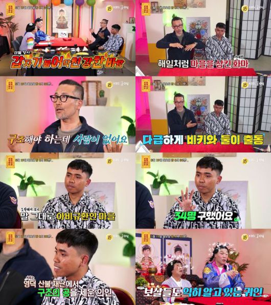 19일 오후 8시 30분 방송되는 KBS JOY 예능물 '무엇이든 물어보살'에 영덕 산불 재난에서 구조의 공을 세운 외국인 노동자와 그와 함께 일하고 있는 선주가 출연한다.