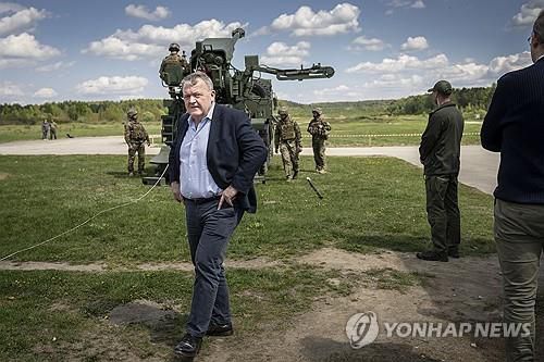 덴마크 외무장관이 2024년 4월 27일 우크라이나를 찾아 보흐다나 자주곡사포 시연을 살펴보고 있다. [EPA 연합뉴스 자료사진. 재판매 및 DB 금지] [ |
