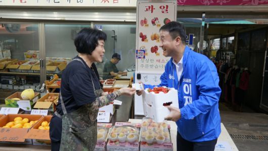 ▲한병도 3선 의원이 고향인 전북 익산시 전통시장에서 지역화폐인 '다이로움'을 사용해 물건을 구매하고 있다. ⓒ한병도 의원 페이스북 |