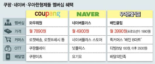 한 플랫폼이 이커머스·배달앱·오티티(OTT)를 동시에 제공하는 ‘쿠팡 모델’이 업계 표준으로 자리 잡고 있다. 네이버와 배달의민족 등이 업계 문턱을 넘는 협업으로 멤버십 서비스를 강화하고 있기 때문이다. 사용자를 특정 플랫폼에 묶어두는 ‘록인(Lock-in·가두리) 효과’를 노린 거대 플랫폼의 합종연횡이 본격화하는 모양새다.