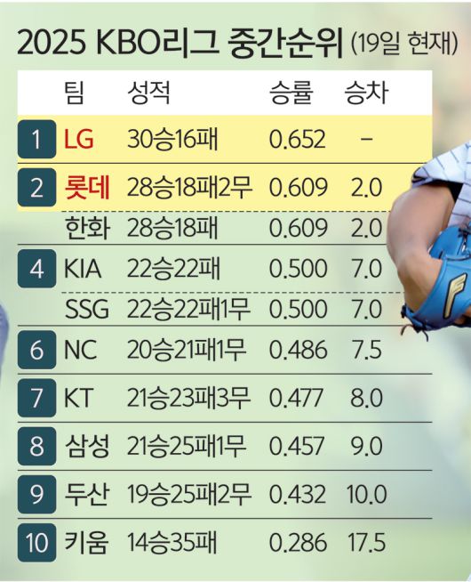 2025시즌 프로야구 5월 초 분위기를 달군 구단은 12연승을 내달리며 선두까지 차지했던 한화였다. 이런 한화가 지난주 1승5패의 부진에 빠진 사이 치고 올라오는 팀이 있다.