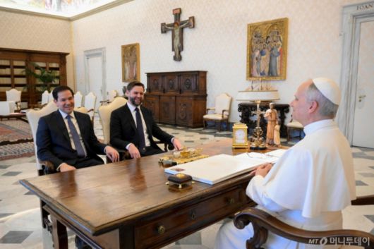 19일(현지시간) AP통신에 따르면 밴스 부통령은 이날 오전 7시50분쯤 바티칸에 도착해 레오 14세 교황과 40분 동안 회담을 진행했다. 가톨릭 신자인 마코 루비오 미 국무장관도 동석했다.