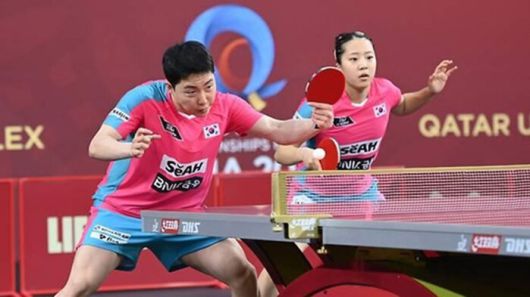 신유빈은 19일 카타르 도하의 스포츠아레나에서 열린 대회 혼합복식 32강에서 임종훈(한국거래소)과 손발을 맞춰 나이지리아의 올라지데오모타요-카비랏 아욜라 조를 3-0(11-2 11-3 11-4)으로 완파하고 16강에 올랐습니다.