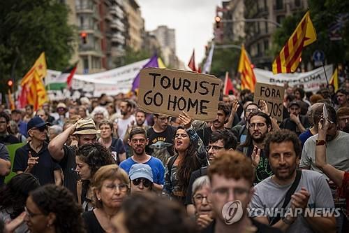 작년 6월 스페인 바르셀로나에서 열린 과잉 관광 반대 시위 |