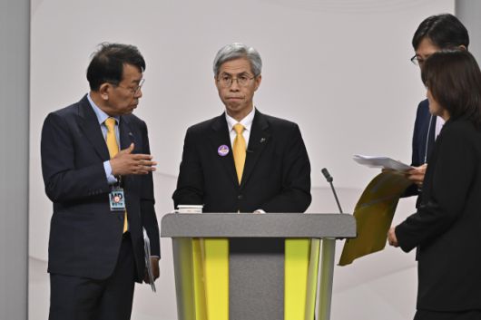 ▲민주노동당 권영국 대선후보가 18일 서울 마포구 상암동 SBS 프리즘센터 스튜디오에서 열린 제21대 대선 1차 후보자 토론회를 준비하고 있다. ⓒ연합뉴스 |