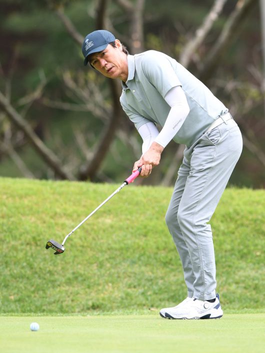 골프채를 들어도 머릿속엔 온통 대표팀뿐이다. 축구인들이 모여 화합을 다지는 2025 축구인 골프대회가 19일 경기도 용인 코리아CC에서 열렸다. 유쾌한 농담과 선의의 경쟁이 이어지는 가운데 유독 고민이 많은 듯한 얼굴이 있었다. 주인공은 한국 축구대표팀을 이끄는 홍명보 감독이다.