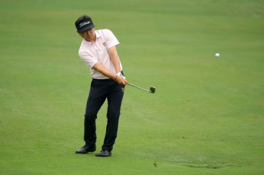 양용은이 리전스 트레디션 4라운드 18번 홀에서 두 번째 샷을 하고 있다. 버밍햄(미국)=AFP연합뉴스 |
