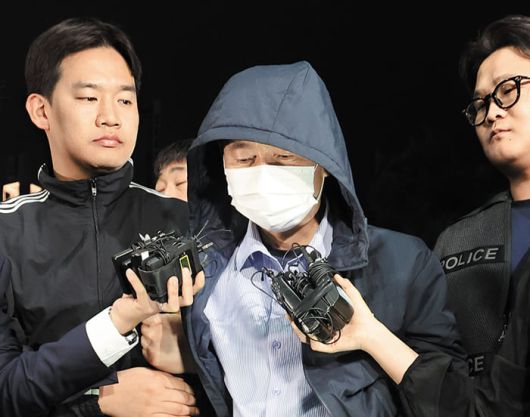 붙잡힌 살인·난동 용의자 차철남 - 19일 경기 시흥에서 발생한 흉기 살인·난동 사건의 용의자 차철남(왼쪽에서 둘째)이 이날 오후 검거돼 시흥경찰서로 압송되는 모습. 차씨는 앞서 흉기로 2명을 살해하고, 편의점 주인과 건물주 등 2명을 찔러 중상을 입힌 혐의를 받고 있다. /연합뉴스 |