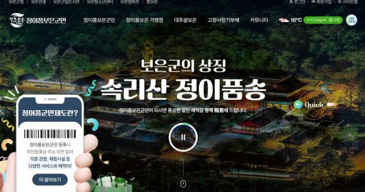 충북 보은군의 정이품 보은군민 가입용 인터넷 홈페이지 화면. 보은군 홈페이지 캡처 |