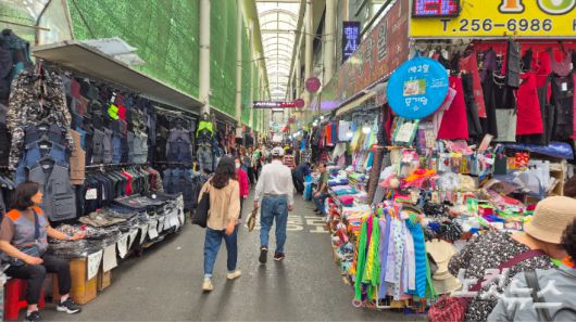 지난 14일 찾은 대구 서문시장은 29도에 육박하는 높은 기온에도 손님들로 북새통을 이뤘다. 전날 김문수 국민의힘 후보가 다녀간 서문시장은 여전히 보수 성지 대구의 심장으로 기능하고 있었다.