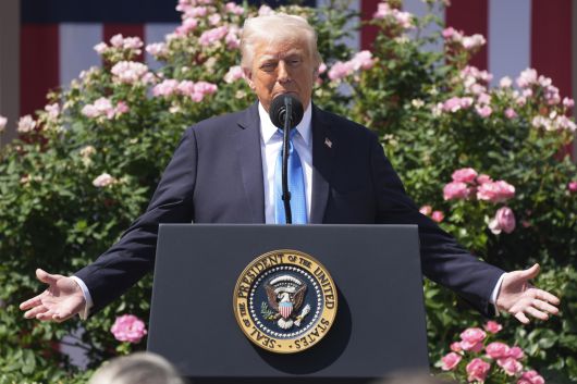 도널드 트럼프 미국 대통령이 19일(현지시간) 백악관 로즈가든에서 연설하고 있다. AP연합뉴스 |
