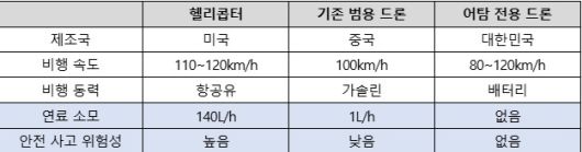 향후 어탐 드론이 헬기와 범용 드론을 대체하면 연료비 등 제반 비용을 최대 60%까지 절감할 것으로 기대된다.