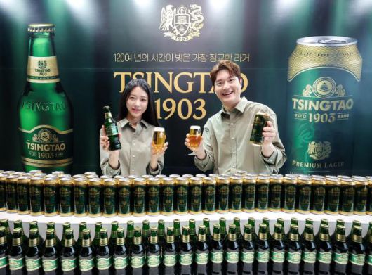 20日,在位于首尔明洞的乐天百货店,模特们正在展示青岛1903啤酒。青岛1903来源于品牌创立的年份1903年,特点是采用了当时品牌首位酿酒师汉斯·克里斯安·奥古特的原创配方。