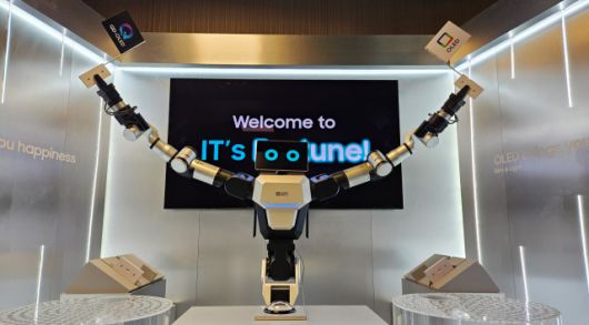 특히 이번 전시회에서는 로봇 플랫폼 전문기업 '레인보우로보틱스'의 이동형 양팔로봇을 활용해 삼성 OLED의 얇고 가벼운 특성을 확인할 수 있는 로봇쇼를 준비했다.