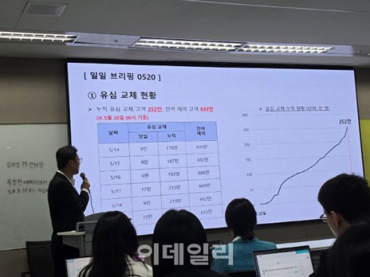 김희섭 SKT PR센터장은 20일 열린 일일브리핑에서 “전날 33만명이 유심을 교체했고, 누적 252만명이 교체했다”며 “기존에는 28만명이 가장 많았는데, 그동안 문자를 받고 안오신분들이 매장을 방문하시고 유심교체 업무에 집중하면서 빨라졌다”고 설명했다.