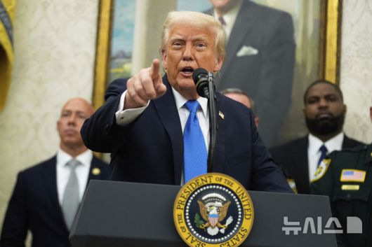 [워싱턴=AP/뉴시스]도널드 트럼프 미국 대통령이 19일(현지 시간) 백악관 집무실에서 기자들의 질문에 답변하고 있다. 2025.05.20. |