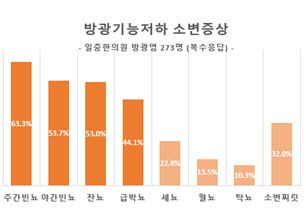 방광 및 전립선 질환을 중점 진료하는 일중한의원 (원장 손기정 한의학박사)은 최근 만성방광염 환자들이 겪는 8대 주요 소변 증상과 주야간 소변 횟수 등 배뇨 실태 분석 결과를 발표했다.