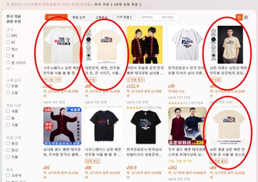 20일 타오바오 해외 사이트 한국 의류 카테고리를 보면 ‘전두환 옷’ ‘서울의 봄’ ‘남한 얼굴’ ‘전두환 장군에게 경의’ 등의 키워드와 함께 이 같은 상품이 올라와 있다.
