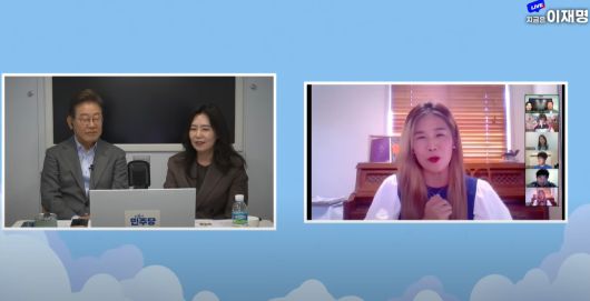 이재명 더불어민주당 대통령 후보가 20일 해외교민과 온라인 간담회를 진행하고 있다. |