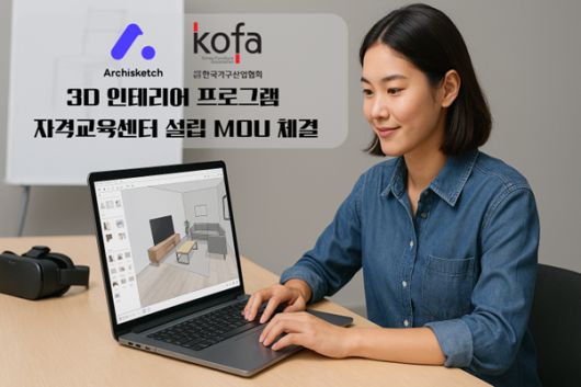 아키스케치는 사단법인 한국가구산업협회와 함께 ‘3D 인테리어 프로그램 자격증 훈련센터 설립’을 위한 업무협약(MOU)을 체결했다고 밝혔다.