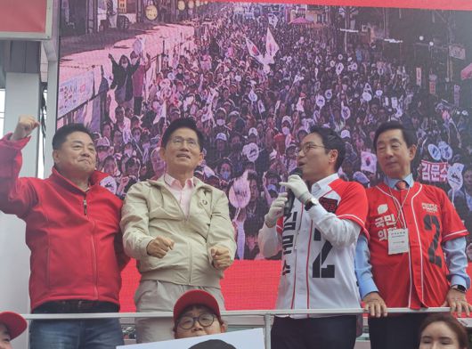 김 후보는 이날 12시10분경 서울 강서구 화곡남부시장 앞에 설치된 유세차에 도착해 시장을 둘러볼 예정이었으나, 예정된 시간을 넘겨 느즈막히 도착했다. 유세차에 김 후보 도착 때까지 사회를 보던 김일호 서울시당위원장 겸 서울 강서병 당협위원장은 김 후보가 앞선 크로마키 촬영에서 NG가 발생해 늦게 도착한다며 양해를 구했다. 양향자 국민의힘 공동선대위원장과 해수부 차관 출신 박성훈 의원이 유세차에 올라 김 후보가 도착할 때까지 연설했다.