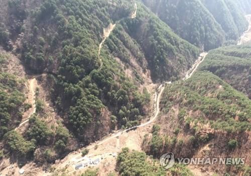 산림자원법상 임도를 조성할 때 산사태 방지와 성토사면(흙을 쌓아 만든 경사면) 보호를 위해 구조물을 놓아야 하지만 이를 지키지 않았다는 것이다.