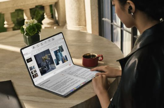 중국 화웨이가 19일 출시한 자체 운영체제 훙멍 기반의 폴더블 노트북 '메이트북 폴드'. 화웨이 제공 |