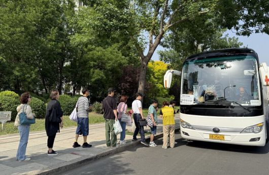 1시간 넘게 기다린 조씨는 오전 8시30분 ‘주중국대사관(재외투표소)’ 셔틀버스에 맨 처음 탔다. 베이징에 있는 주중 대사관 재외선거관리위원회는 유권자 편의를 위해 재외국민 투표 기간인 25일까지 베이징 시내 2개 노선과 톈진에 대형 버스를 배치해 운영한다. 수백킬로미터 떨어진 곳에서 투표소를 찾는 재외 유권자들도 있지만, 공공교통을 이용하면 왕복 7시간은 걸리는 톈진도 투표 장벽이 만만치 않은 곳이다. 톈진에선 톈진한국인(상)회 사무국이 운영 및 안전 자원봉사자로 나섰다. 이곳에서 출발한 대형버스는 거의 만차로, 36명이 함께 베이징의 재외투표소로 향했다.