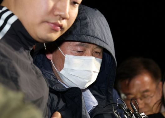 '시흥 흉기 공격' 용의자 차철남이 19일 오후 경기 시흥시 장곡동 시흥경찰서로 압송되는 모습. /사진=뉴스1. |